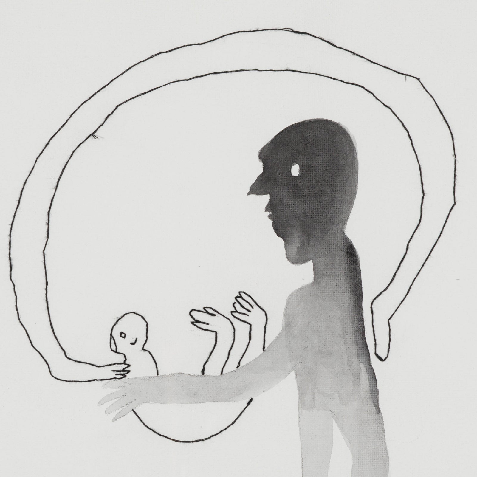 Black ink and thread on canvas